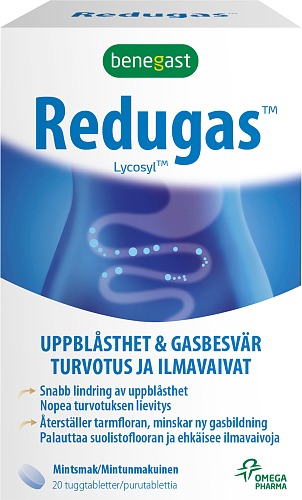 Många av oss har från och till problem med att magen känns uppsvälld, så kallad uppblåsthet. Det beror vanligtvis på gasansamlingar i mag-tarmkanalen. Uppblåsthet leder ofta till obehag som buksmärtor, gaser och en känsla av mättnad och svullenmage, vilket kan påverka livskvaliteten. Redugas™ har tagits fram för att erbjuda en varaktig lösning för personer som lider av uppblåsthet och gasbesvär.