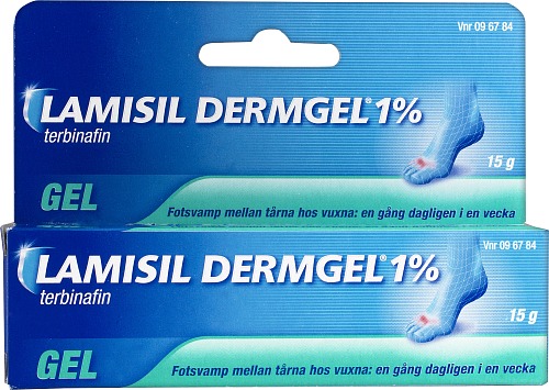 Lamisil Dermgel är ett svampmedel som används för att behandla svampinfektion mellan tårna. Gel passar fuktig hud med fotsvampsangrepp. Lamisil Dermgel lindrar hudirritation på grund av fotsvamp på två sätt: den vårdar som en kräm och kyler som en gel. Läs alltid bipacksedeln noga eller gå in på fass.se för mer information.