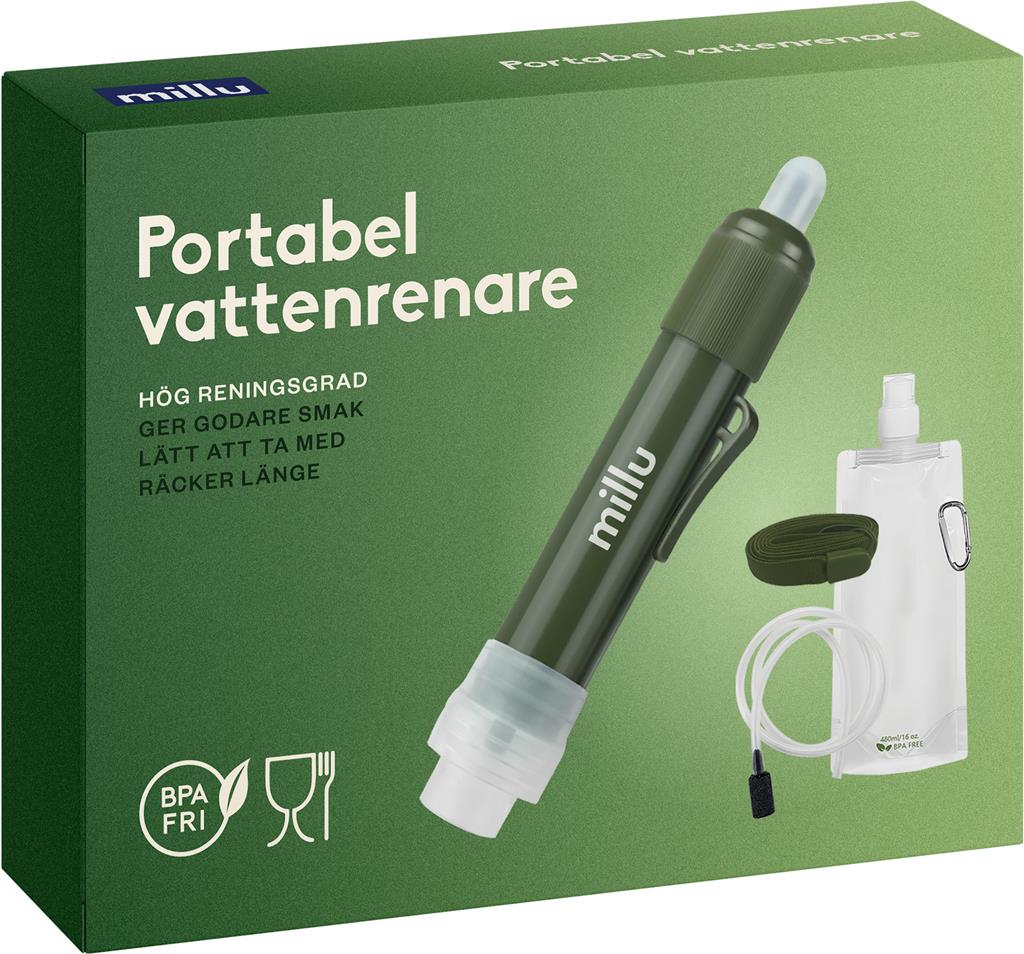 innehåller: vattenfilter, sugrör, plastetui, halsrem och påse för förvaring.